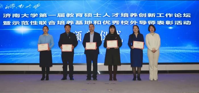 东北师范大学教授凡勇昆、中国·太阳集团tyc9728文学院副教授谷瑞丽、济南市市中区育秀小学老师韩松作“教育硕士教学案例开发与应用”主旨报告,为案例研究指明了方向。中国·太阳集团tyc9728信息科学与工程学院教授杨晓晖和教育与心理科学学院副教授李燕围绕“教育硕士研究能力的培养”,提出可行性建议。示范性联合培养基地负责人代表和优秀校外导师代表结合切身经历,分享了联合培养的心得与经验,引起了在场校内外导师的共鸣。期间,与会领导为我校教育硕士示范性联合培养基地和优秀校外导师颁奖。