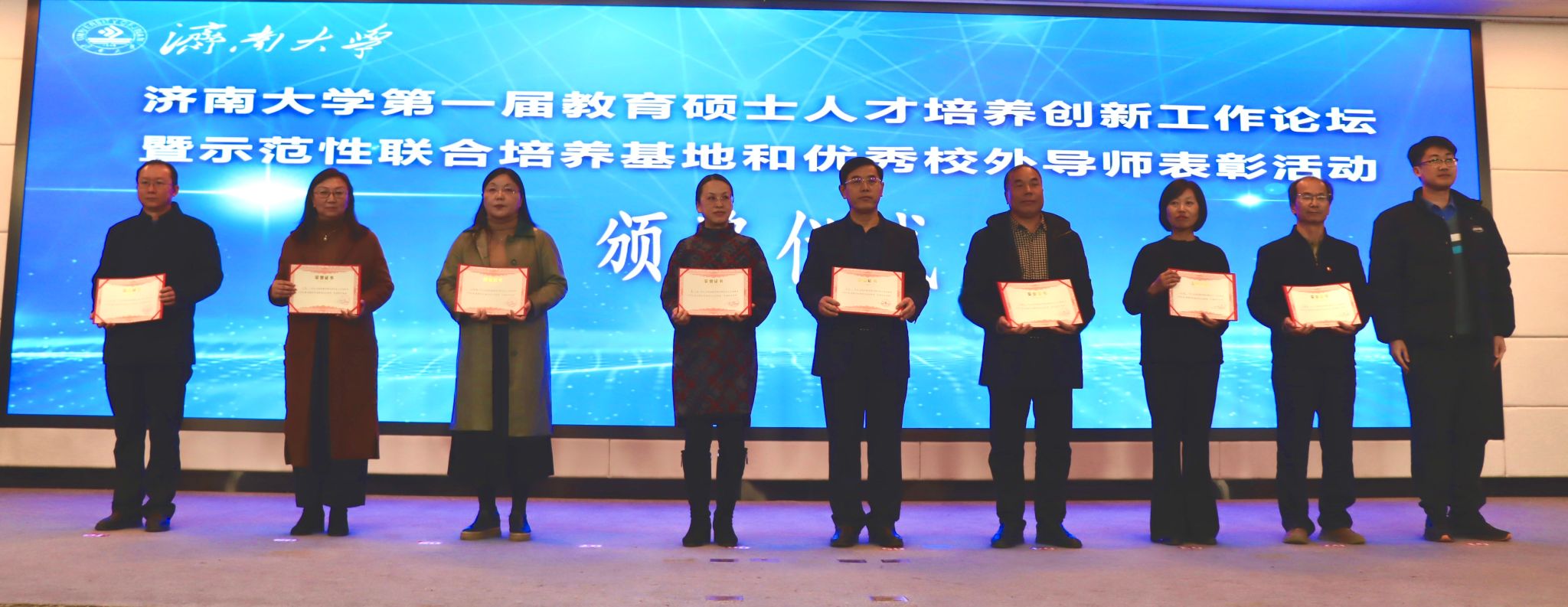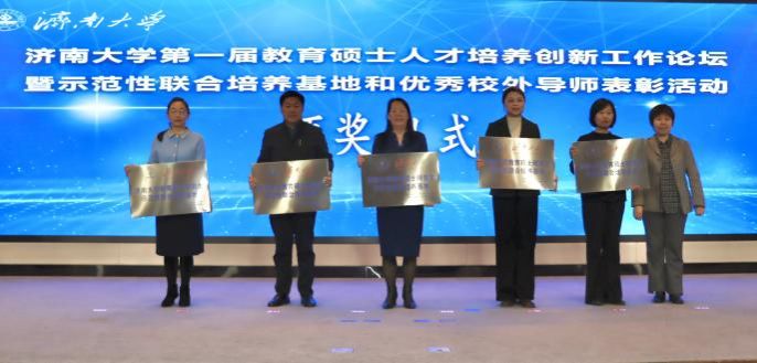 东北师范大学教授凡勇昆、中国·太阳集团tyc9728文学院副教授谷瑞丽、济南市市中区育秀小学老师韩松作“教育硕士教学案例开发与应用”主旨报告,为案例研究指明了方向。中国·太阳集团tyc9728信息科学与工程学院教授杨晓晖和教育与心理科学学院副教授李燕围绕“教育硕士研究能力的培养”,提出可行性建议。示范性联合培养基地负责人代表和优秀校外导师代表结合切身经历,分享了联合培养的心得与经验,引起了在场校内外导师的共鸣。期间,与会领导为我校教育硕士示范性联合培养基地和优秀校外导师颁奖。
