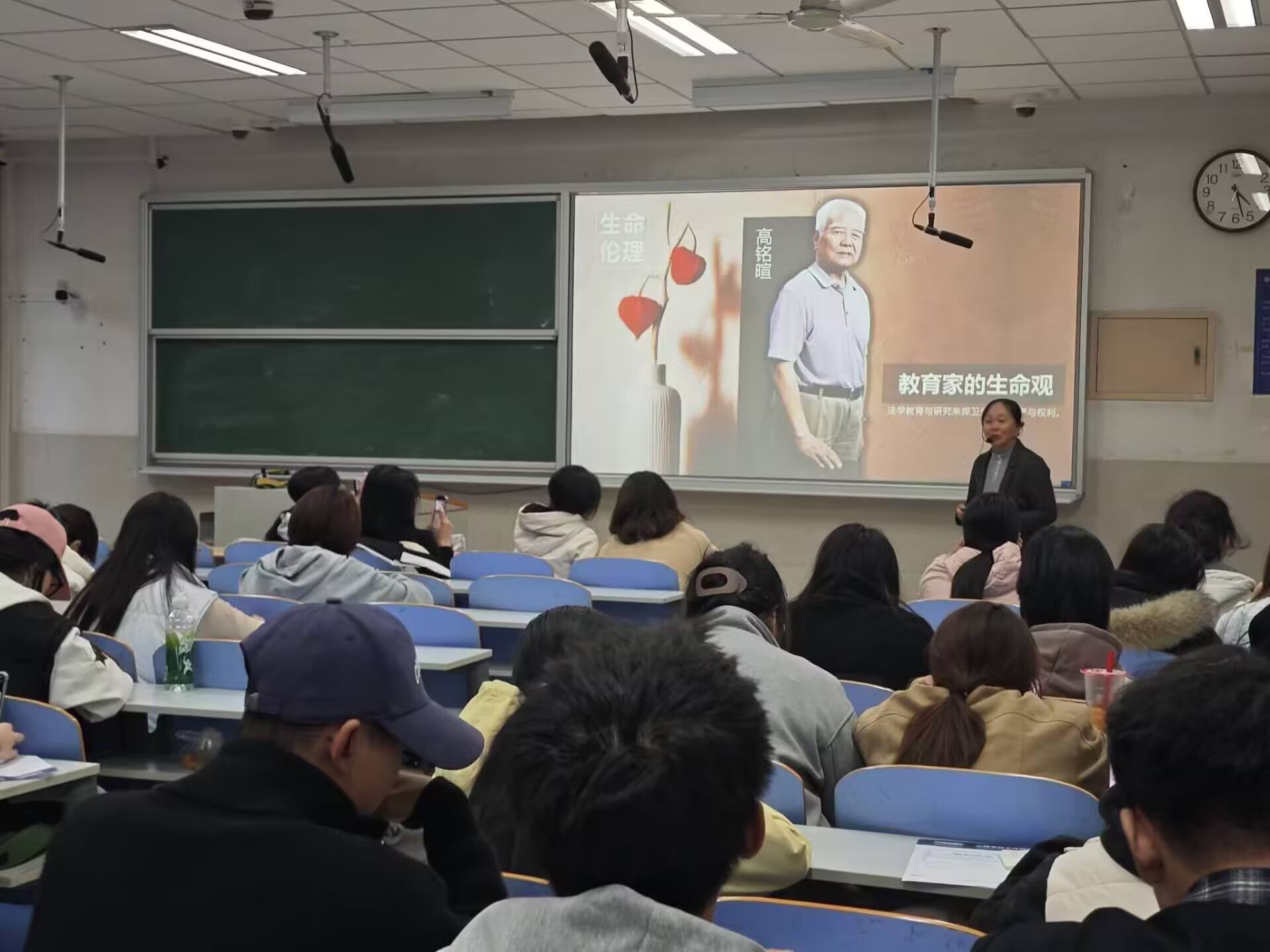 宣讲聚焦高铭暄、于漪、卫兴华、叶圣陶四位教育家的生命伦理与教育思想。高铭暄“法律捍卫生命尊严”的理念,引导学生认识到教育的底线是对个体权利的尊重,筑牢生命伦理与教育伦理的认知根基;于漪“生命在学生身上延续”的箴言,生动诠释教师职业的精神价值,唤醒学生对“传道授业解惑”的初心认同;卫兴华“学术生命联结家国命运”的追求,将个人成长与国家需求紧密结合,厚植学生的教育家国情怀;叶圣陶“教是为了不教”的教育智慧,引导学生把握教育本质,树立以学生发展为中心的育人理念。