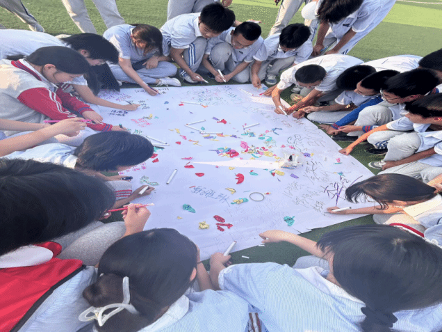 韩菲:5月26日,初三减压活动近尾声,能量树环节,学生们围聚纸旁书写心愿。看着这些年轻的面庞与炽热的文字,我由衷感慨:青春,满是朝气与希望,愿这份热忱,永远照亮他们前行的路 。