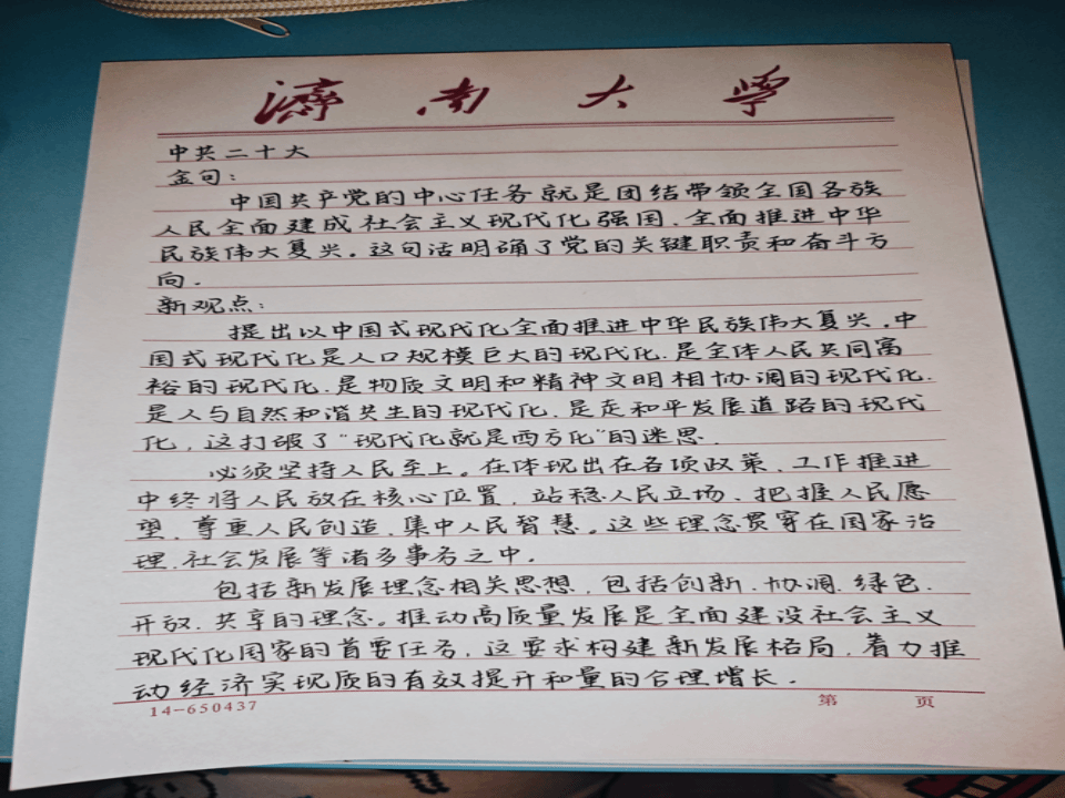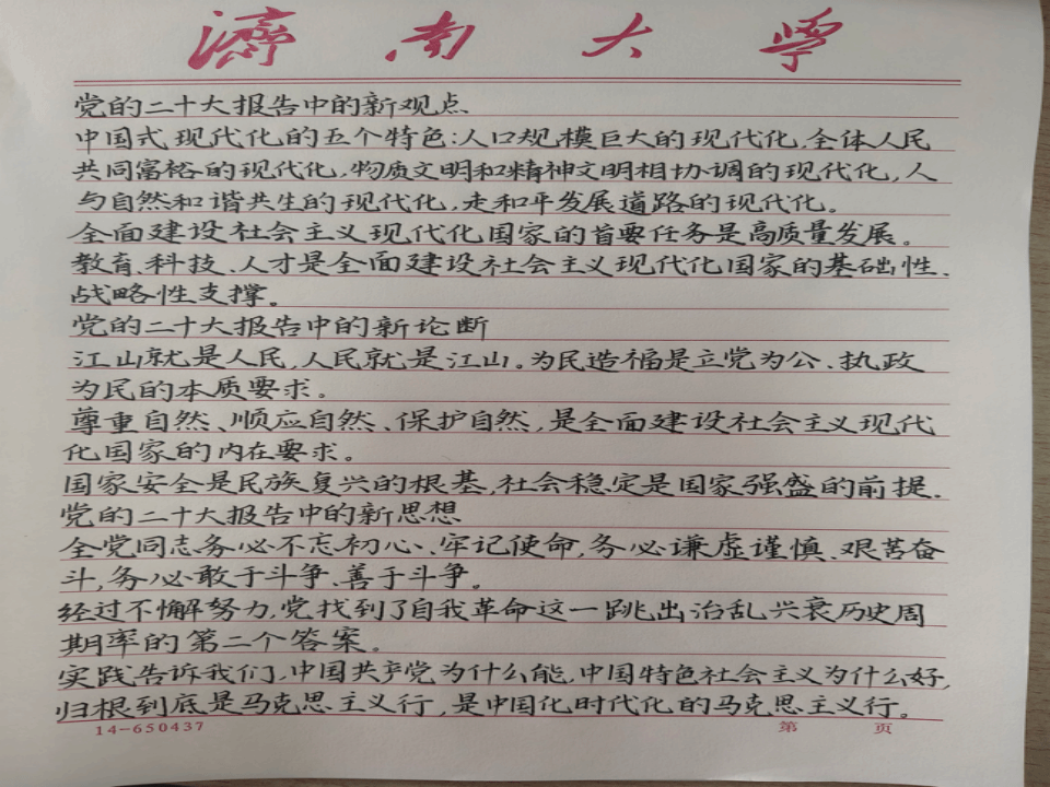 本次活动中,学生们紧扣传达二十大精神的主题,以独特的视角和丰富的创意创作了多样的作品,涵盖多种语言。通过硬笔书法、软笔书法、粉笔字等多种书写方式,用多种语言书写二十大金句,学习宣传党的二十大精神,让学生在挥毫泼墨中共抒爱国情。不仅展示出参赛者扎实的外文功底和艺术素养,也让党的二十大精神在异国文字的演绎下散发别样魅力。