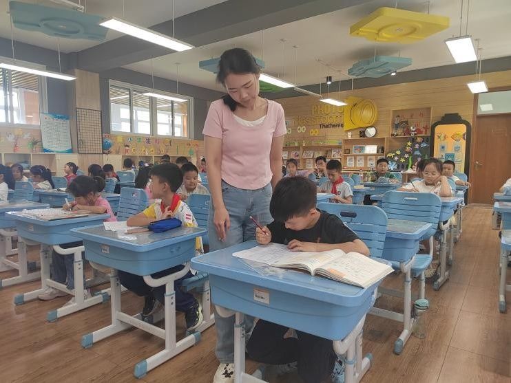 钱诗佳:本学期期末,我有幸参与泉海小学一、二年级“乐考”评价工作。这场充满童趣的素养测评中,生活化主题与游戏化设计相得益彰。学生们手持闯关单,兴奋而期待地有序排队闯关。在我所负责的“漫步芙蓉街、泉城广场”中,二年级的学生们自信朗读、创意造句,生动展现了自己的学习成果。两天的考评虽忙碌,但孩子们脸上洋溢的幸福笑容,让所有付出都化作温暖的教育回响,也让我对未来打造更具生命力的课堂有了更清晰的方向。