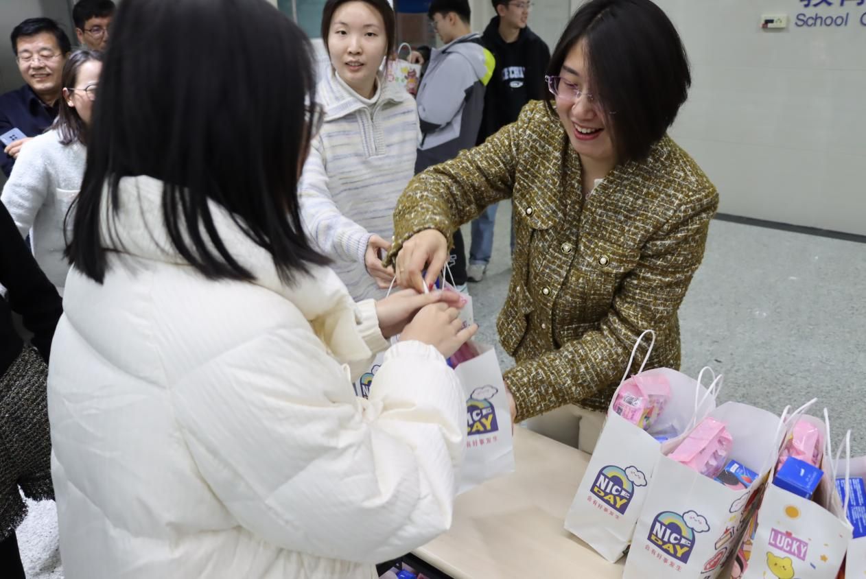 为鼓舞教心学子的考研士气,缓解考研压力,帮助他们以最佳状态迎接考研的最后冲刺,12月3日,学院在特教楼大厅举办了考研慰问活动,为备战考研的学子送上暖心礼包。学院党委书记季竹君、副院长李开云及学办全体老师参加了慰问活动。