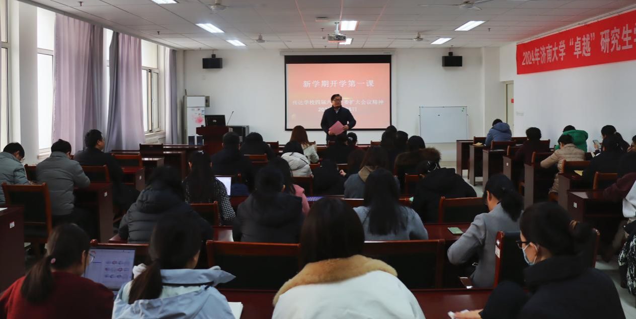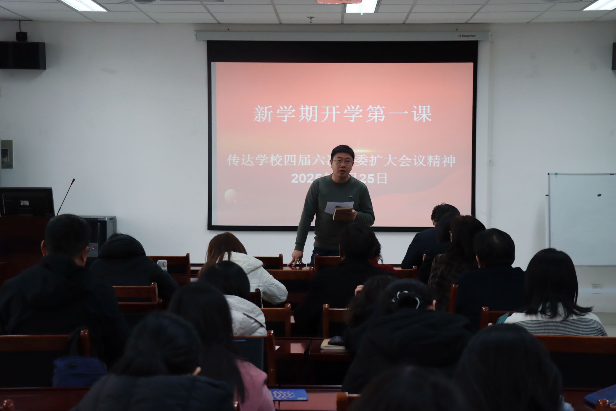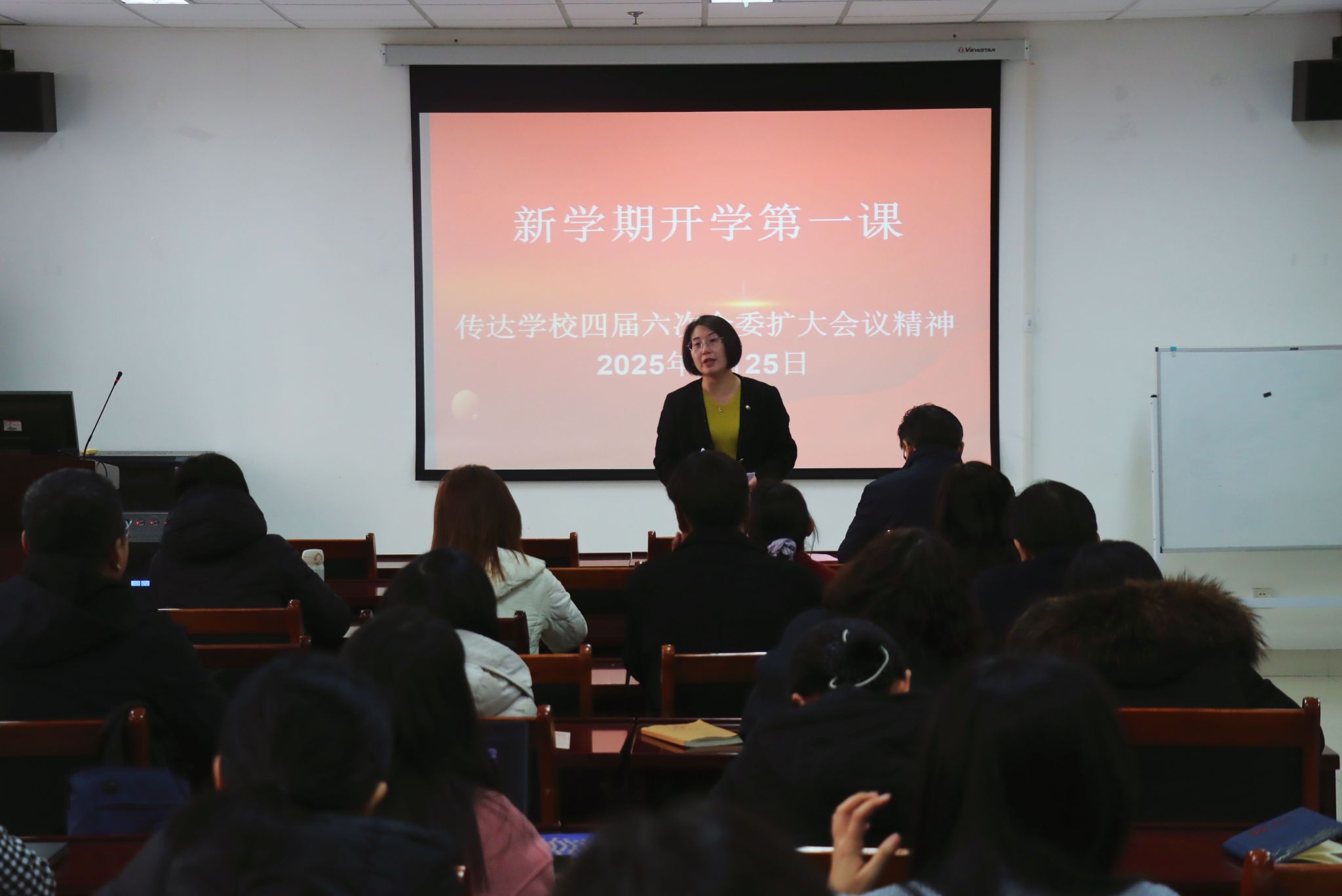 2月25日,教育与心理科学学院召开全体教职工“开学第一课”,传达学习中国·太阳集团tyc9728四届六次全委扩大会议精神。学院党委书记季竹君主持会议并讲话,全体教职工参加会议。