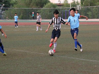 比赛前,两队都早早来到操场进行赛前适应性训练。足球比赛在高温中展开,比赛刚开始我院球员便以威胁的头球,将比赛拉入紧张的气氛,球员们都积极展开防守压制对方的进攻。我院球员凭借雄厚的实力和默契的配合一脚射入了球门。我院球员精诚合作、互相鼓舞,最终以1:0的比分获得了小组赛的胜利。