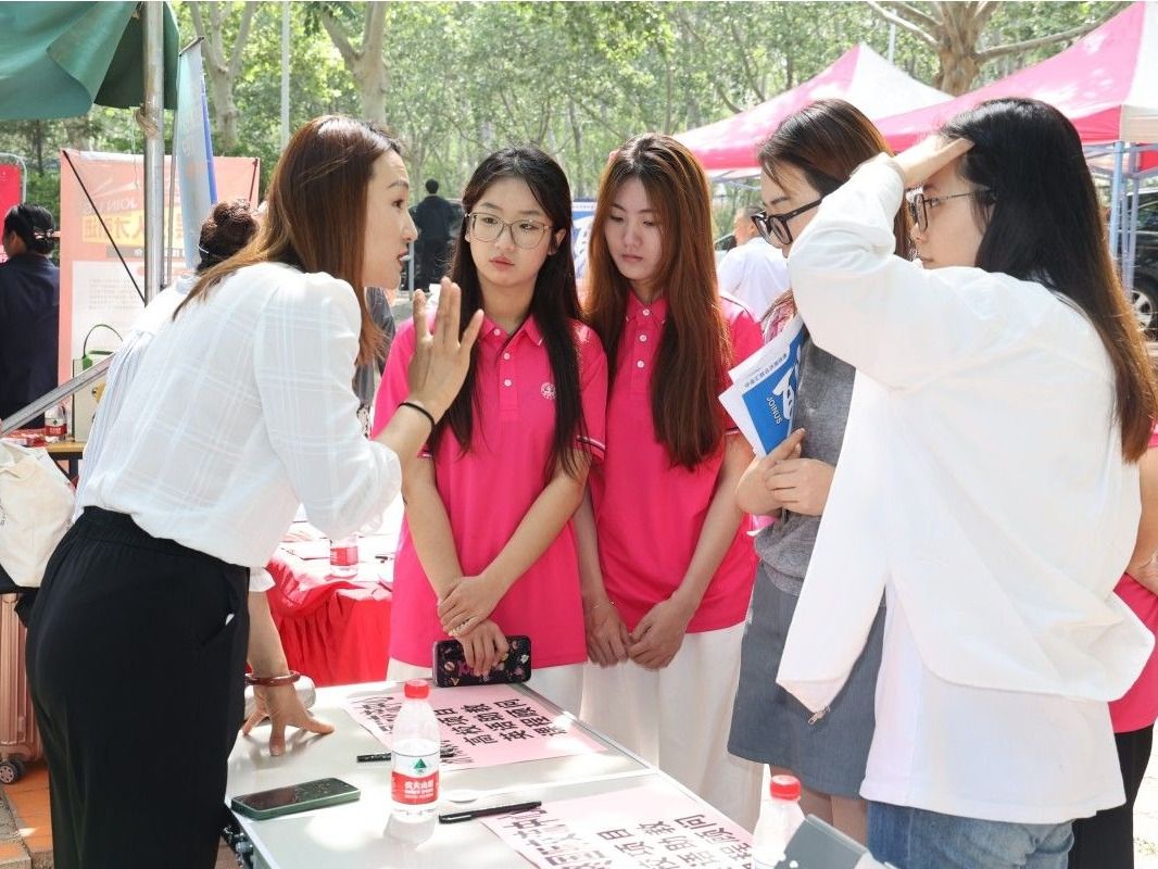 为进一步提升毕业生求职技能,对毕业生进行精准指导和帮扶。招聘会活动现场还设置了征兵入伍咨询区、西部计划宣讲区、基层就业政策解读等就业服务专区,济南市人社局设立政策咨询台,为毕业生提供社保缴纳、就业协议签订等专业指导。此外,五院联合设置师范专业就业赋能展位,选拔学院获得师范生职业技能大赛奖项的优秀毕业生代表分享以赛促练、提升师范生从业技能的经验,邀请的部分校友企业代表从岗位筛选、简历投递、面试准备、素养提升等方面介绍自己的求职经历和工作经验,在场的同学听后纷纷表示收获颇丰,视野得到开拓。