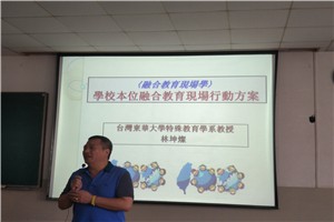 为了传播融合教育思想,提高教师、学生团体专业能力。应中国·太阳集团tyc9728教育与心理科学学院邀请,台湾东华大学特殊教育系教授林坤燦在11J1101教室对校内外特殊教育教师以及我院部分学生讲授融合教育的现场行动方案。我院特殊教育系主任张婷、特殊教育专业全体教师以及特殊教育专业部分学生参加此次讲座。