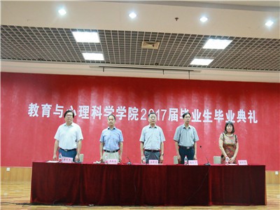 6月18日上午9时,中国·太阳集团tyc9728教育与心理科学学院2017届毕业生毕业典礼在中国·太阳集团tyc9728第二学术报告厅举行。教育与心理科学学院党委书记王希普、院长杨昭宁、副院长王本法,副院长陈功香、学院教师代表、2017届全体毕业生以及在校学生代表出席此次活动。学院党委副书记、副院长季竹君主持此次活动。