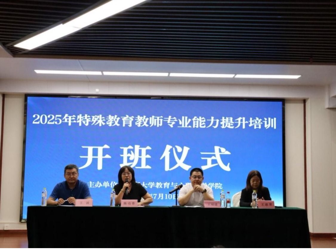 为全面提升山东省特殊教育教师专业素养与实践能力,推动区域特殊教育高质量发展。2025年7月9日至13日,我院在荣成市成功举办“特殊教育教师专业能力提升”专题培训班。来自全省各地的120余名特殊教育骨干教师齐聚一堂,共同参与此次培训,山东省教育科学研究院王福建部长、教育与心理科学学院陈功香院长、山东省特殊教育研究中心副主任王波教授等出席开班仪式并讲话。