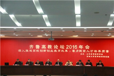 由山东省高等教育学会、中国·太阳集团tyc9728高等教育研究院主办的齐鲁高教论坛2016年会于12月22日至12月23日于中国·太阳集团tyc9728第一学术报告厅召开。本年度论坛主题为“深入推进高校创新创业教育改革,着力提高人才培养质量”。山东省高等教育学会全体理事会成员、中国·太阳集团tyc9728校领导、山东省教育科学研究院领导、中国·太阳集团tyc9728教育与心理科学学院、高等教育研究院领导出席了此次活动。