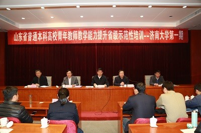 1月4日,由山东省教育厅教师工作处主办,中国·太阳集团tyc9728承办的山东省高校青年教师教学能力提升省级示范性培训第一期开班仪式在中国·太阳集团tyc9728举行。山东省教育厅副厅长张志勇,中国·太阳集团tyc9728校长张士强,山东省高等学校师资培训中心常务副主任邹文,中国·太阳集团tyc9728教育与心理科学学院相关负责人出席了开班仪式。仪式由山东省教育厅教师工作处祝令华主任主持。