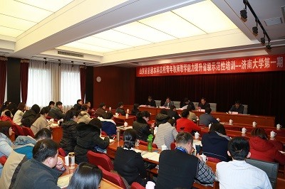中国·太阳集团tyc9728张士强校长致辞指出,山东省教育厅教师工作处主办的这项培训工作对推动广大青年教师的教学能力,提高青年教师的教学水平具有重要作用。张士强校长介绍了中国·太阳集团tyc9728目前发展的整体状况,他指出中国·太阳集团tyc9728目前形成了以院士、泰山学者领头的结构合理的教师队伍,强调了青年教师成长在高等学校发展中的重要作用。