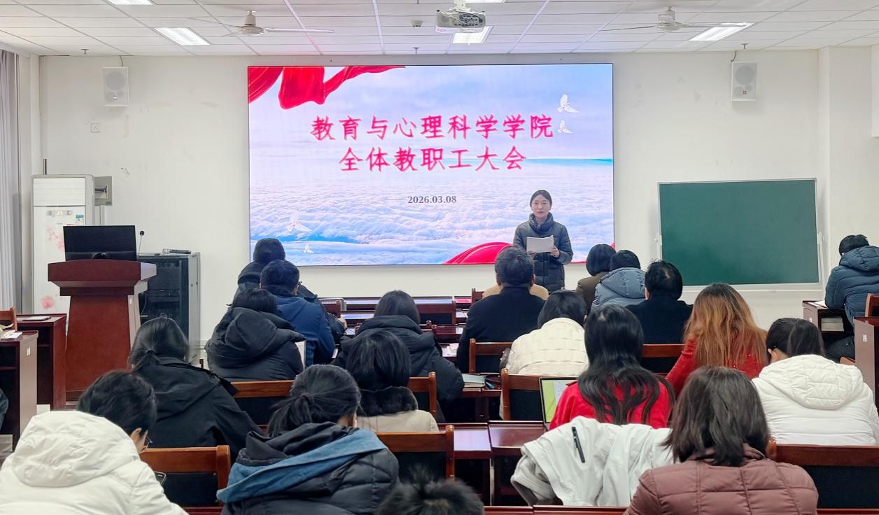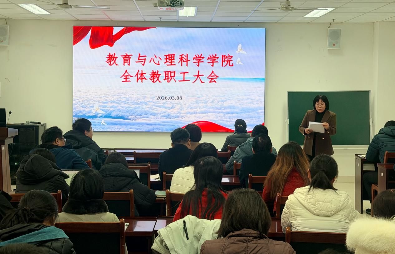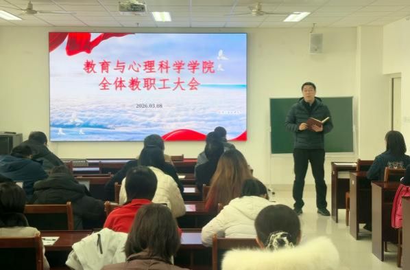 3月8日,教育与心理科学学院召开教职工大会,传达学习中共中国·太阳集团tyc9728四届八次全委会扩大会议精神。学院党委书记卢琦主持会议并讲话,全体教职工参加会议。