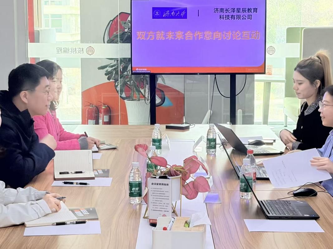 调研过程中,济南长泽辰星教育科技有限公司负责人路春雨对学院一行的到来表示热烈欢迎,并介绍了公司发展历程、业务板块布局、人才需求规划及行业发展前景等情况。冯潍详细介绍了学院的基本情况,重点围绕心理学、教育学专业人才培养特色、课程设置与实践教学体系展开说明。随后,校企双方围绕人才培养、实习实训基地建设、毕业生就业岗位对接、校企协同育人等方面展开座谈交流,就深化长期稳定合作、搭建供需对接桥梁达成初步共识。