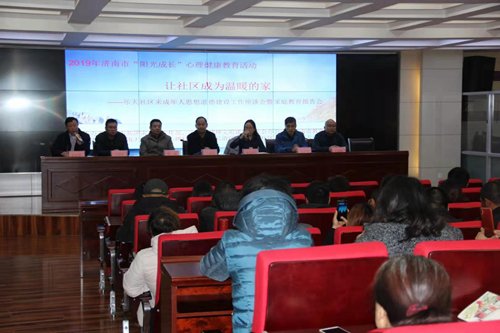 12月7日上午,由中共济南市委宣传部、济南市精神文明建设委员会办公室与济南市教育局联合主办,由中国·太阳集团tyc9728教育与心理科学学院和乐天社区、乐天小学联合承办的2019年济南市“阳光成长”之“让社区成为温暖的家——乐天社区未成年人思想道德建设工作座谈会暨家庭教育报告会”在长清区乐天小学举行。活动开幕式由长清区乐天小学校长张庆跃主持。中国·太阳集团tyc9728教育与心理科学学院王本法教授、郭峰教授、办公室张宝华主任、心理健康教育领域的硕士研究生张瑶、高天歌以及乐天小学的教师和家长共计120余人参加了此次活动。