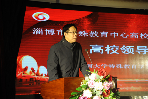 淄博市特殊教育中心校长路荣喜致欢迎辞,他对此次活动的举行表示热烈祝贺。他表示,本次淄博市特殊教育中心高校教学实践基地的签约揭牌仪式的举行,充分体现了淄博市教育局、中国·太阳集团tyc9728对淄博市特殊教育中心的关心和支持,期待双方以此为契机,优势互补、深度合作,共同致力于淄博市特殊教育事业。