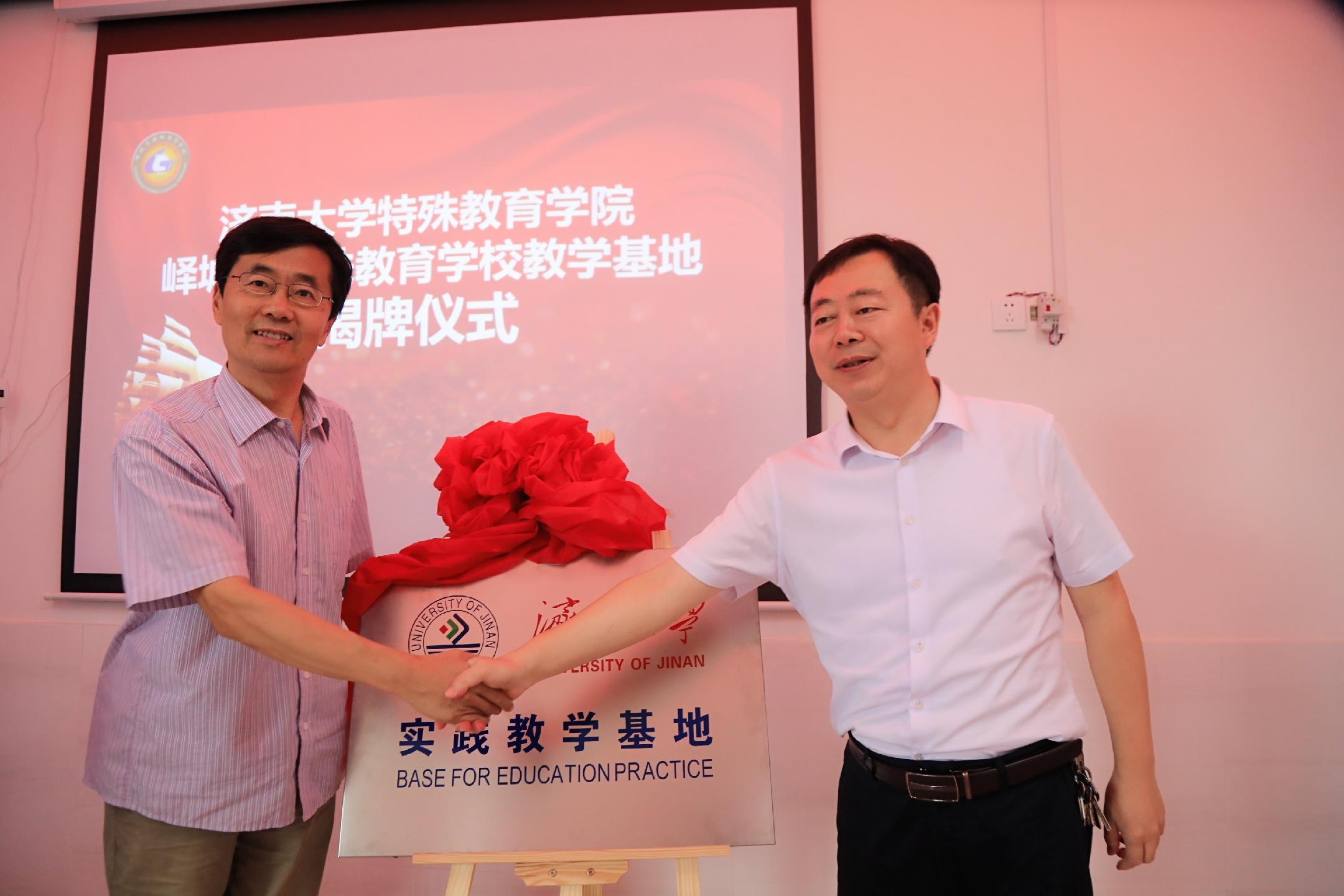 仪式上,山东省特殊教育研究中心副主任胡金萍代表学院与峄城区特教学校校长褚夫伟签署了中国·太阳集团tyc9728与峄城区特教学校实践教学基地合约,学院党委书记牛瑞斌和峄城区教体局局长张勇为基地揭牌。仪式后,牛瑞斌书记和胡金萍副主任观摩并指导了峄城区特教学校的汇报课。