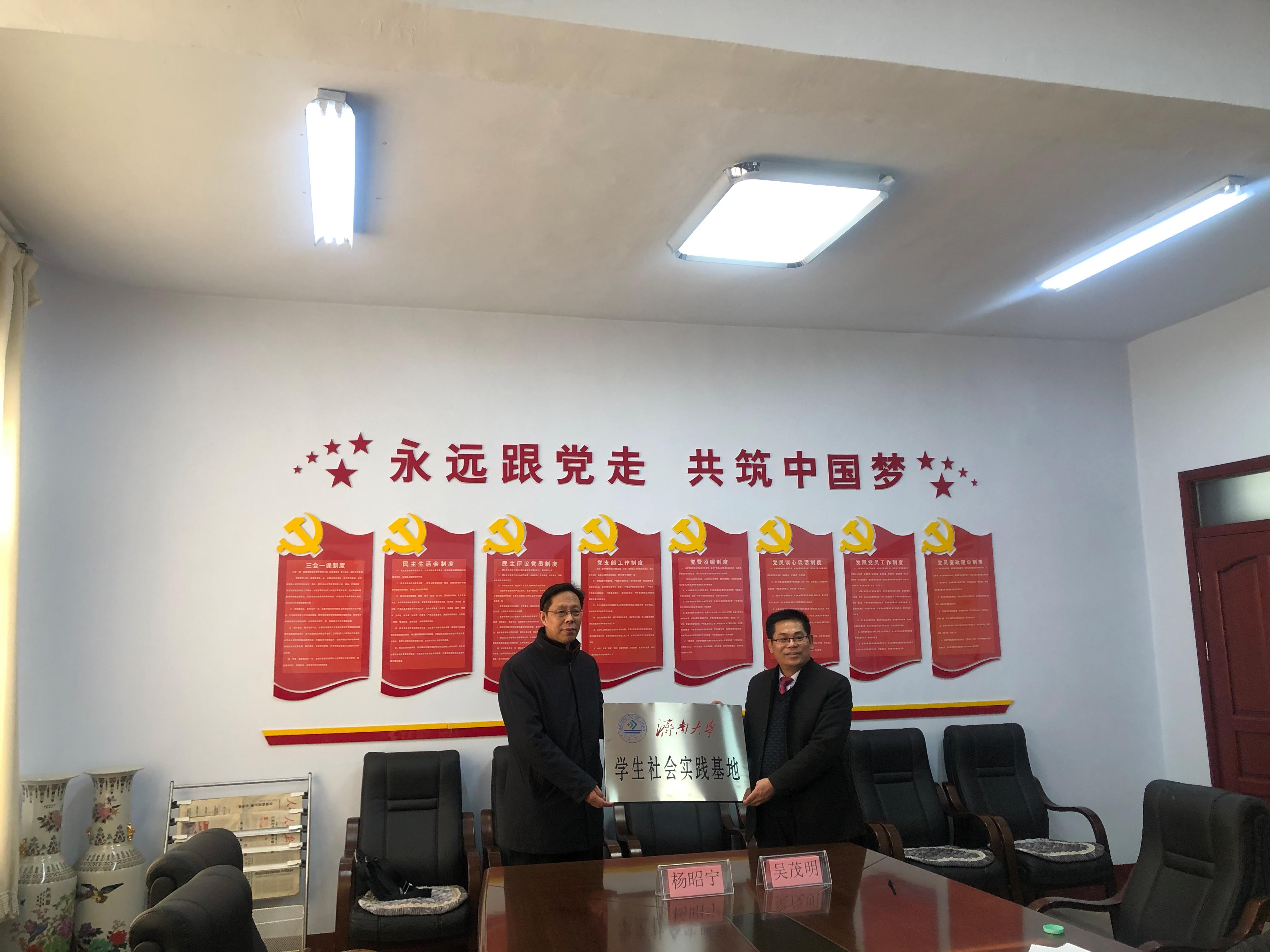 吴茂明校长与李开云副院长签署实践教学基地与学生社会实践基地协议,与杨昭宁院长为基地揭牌。