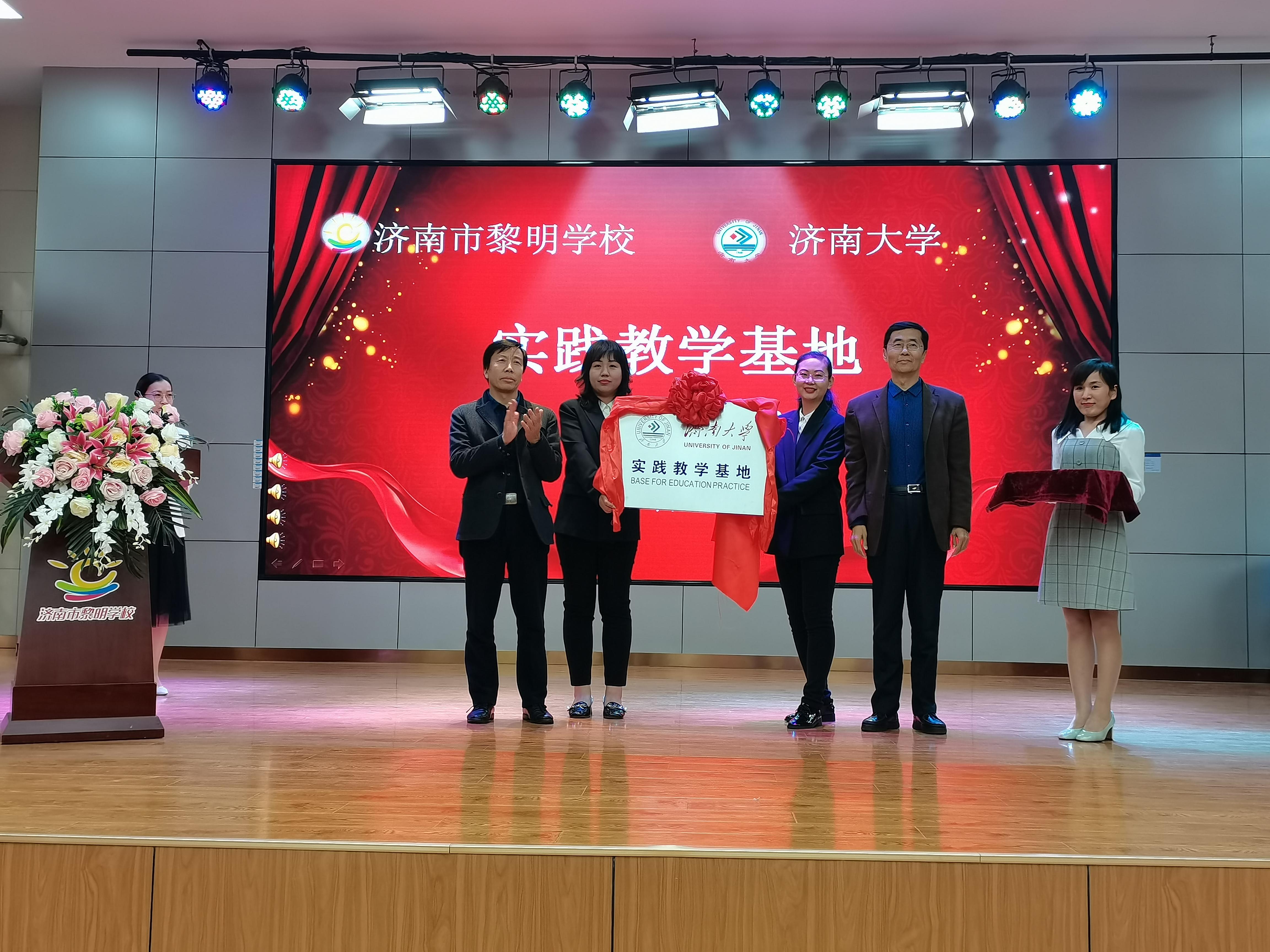 10月26日,中国·太阳集团tyc9728实践教学基地签约授牌仪式在济南市黎明学校举行。中国·太阳集团tyc9728教育与心理科学学院书记牛瑞斌、历下区教体局基础教育科主任高洪东、黎明学校副校长鞠萍、中国·太阳集团tyc9728教育与心理科学学院特教系系主任宿淑华出席揭牌仪式。牛瑞斌和鞠萍先后在仪式上作了讲话,由牛瑞斌与高洪东一同为“中国·太阳集团tyc9728实践教学基地”揭牌。