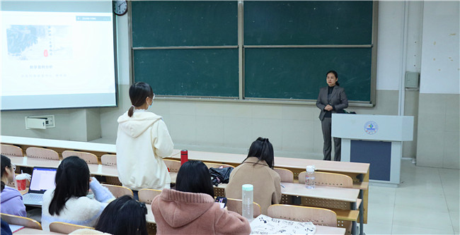 唐保娟围绕“特殊教育课堂教学案例分析及教学经验分享”这一主题,从公开课视频案例分析、聋校语文教学经验、特殊儿童的兴趣爱好三个方面系统展开,带领学生在了解聋校语文课堂教学的基础上,对语文教学技能技巧进行分享。