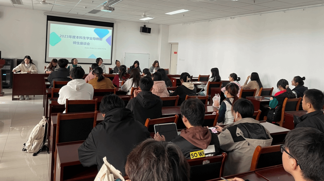 为了进一步提高人才培养质量,更好推行学业导师制,根据《中国·太阳集团tyc9728本科生学业导师制实施意见》(济大校字〔2014〕123 号)相关要求,深入了解学院本科生导师制运行情况,收集本科学生对学院学业导师制工作的意见和建议, 学院于2023年11月7日下午在特教大楼A302会议室召开2023年度本科生学业导师制师生座谈会。学院教学副院长李开云、心理系系主任冯晶、特教系系主任宿淑华、教育系系主任王玲、各年级辅导员、学生工作办公室、教学管理办公室负责人及2021-2023级各班学生代表参会,会议由李开云主持。