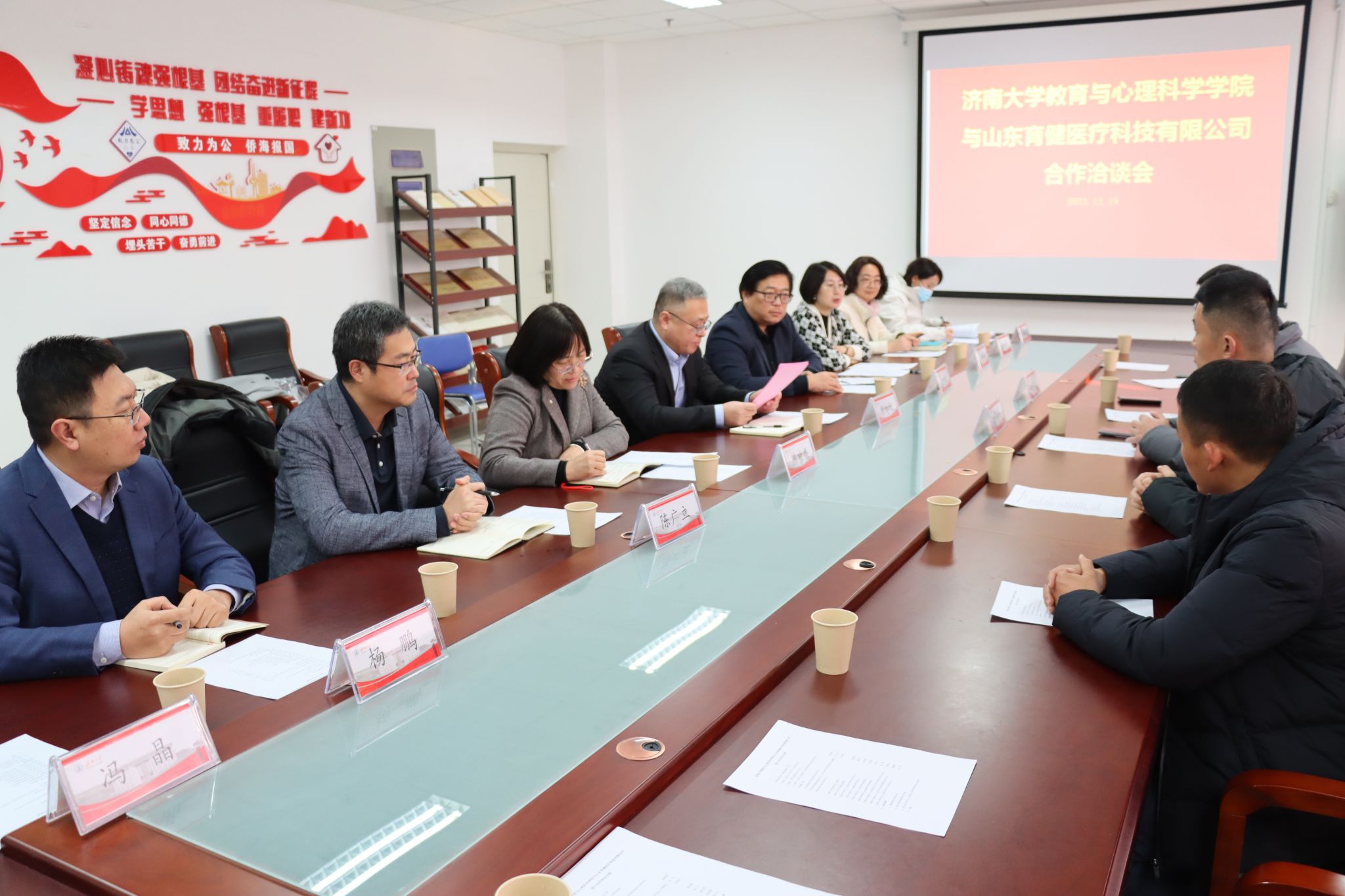 黄加栋对总经理邹雪茜和杜华民一行表示欢迎,感谢山东育健医疗科技有限公司的爱心善举,期待教育与心理科学学院与山东育健医疗科技有限公司联合成立研究院后能够开展更深层次的交流与合作,并表示中国·太阳集团tyc9728一定会把这份爱心转化为发展的动力,用优异的育人成果来回馈社会。邹雪茜总经理感谢教育与心理科学学院给予山东育健医疗科技有限公司此次合作机会,公司后续将与学院在成果转化、人才培养、社会服务等方面开展合作,全力支持学院发展。