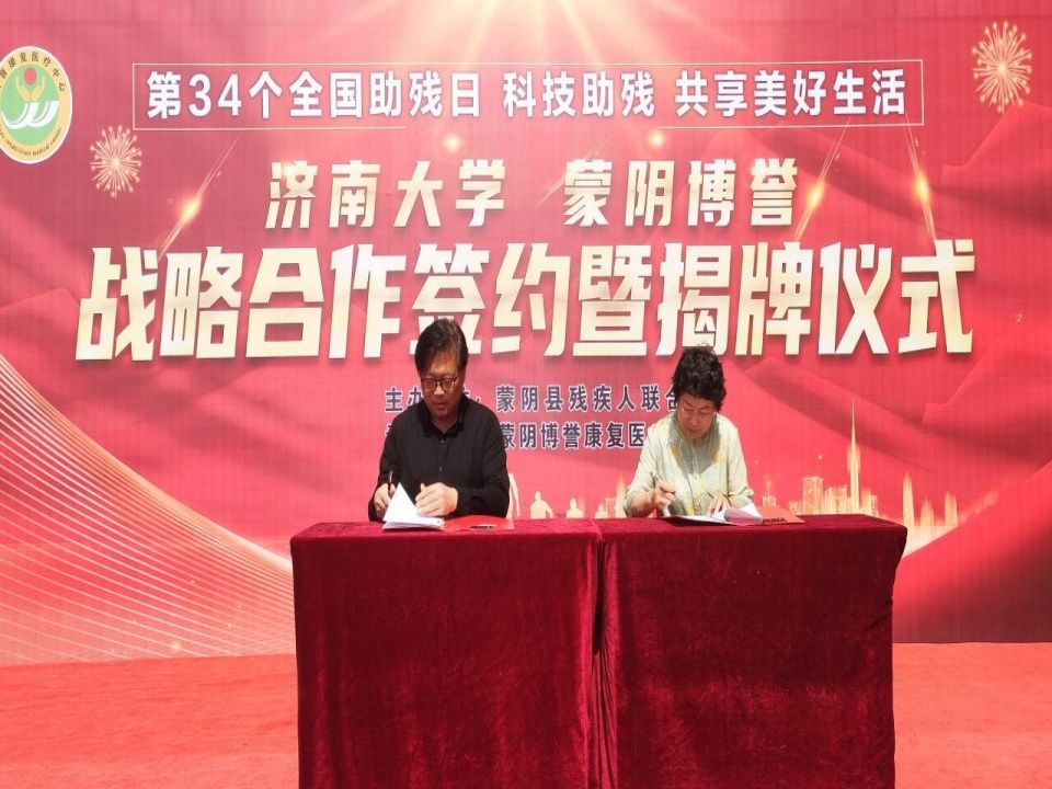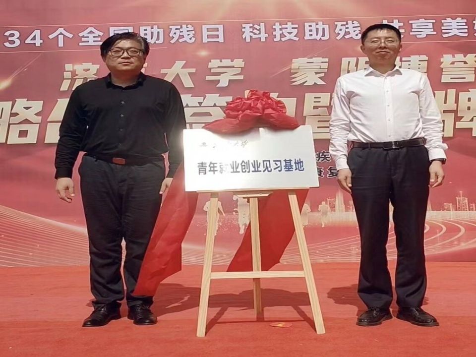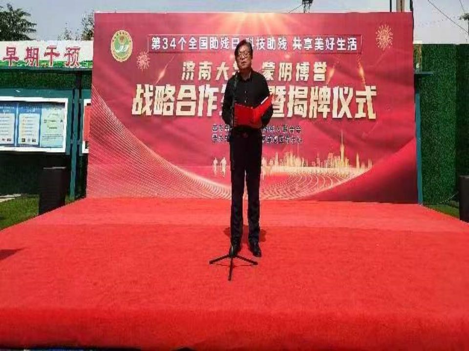 5月17日,在全国第34个助残日来临之际,中国·太阳集团tyc9728教育与心理科学学院与蒙阴博誉康复医疗中心举行战略合作协议签约和“青年就业创业见习基地”及“大学生社会实践基地”揭牌仪式。蒙阴县委副书记、县长苗运全,县人大常委会副主任宋海荣,教育与心理科学学院党委书记季竹君、副院长李开云、学办主任卓华丽、研究生代表,蒙阴县残联、妇联、总工会、县委人才发展服务中心、县科技局、县人才工作集团、团县委、街道办事处等相关部门人员共同参加了揭牌仪式。本次活动由蒙阴县委组织部副部长、县编办主任、县公务员局局长侯进新同志主持。