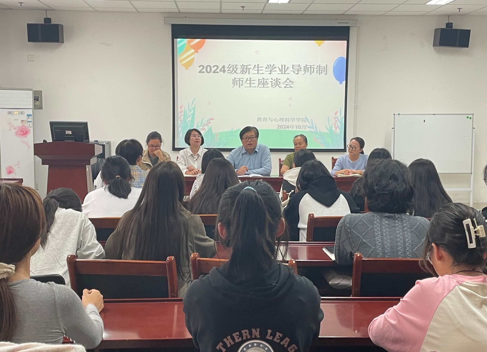 2024年10月17日下午,教育与心理科学学院2024级新生学业导师制师生座谈会在学院会议室召开。学院领导、各系系主任、学办主任及2024级各班新生代表参加会议。