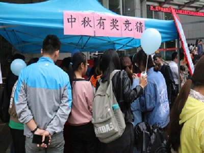 中秋佳节将近,为给学生们带来家乡般的温暖,缓解思乡之情,同时使他们更加了解中秋这一节日,培养大学生对传统节日的兴趣,教育与心理科学学院心动泉城心理服务中心、院心理协会、心泉青年志愿者协会的志愿者们于9月20日在八食广场开展中秋有奖竞猜活动。