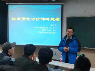 李福春老师主要从道德量化评价的理性审视、道德性问题、生活指向问题以及在道德量化评价中“人的在场”问题这四个方面进行报告的讲解。李老师指出我们的核心价值观其实就是一种德,它既是个人的的德,也是一种大德,是一个国家的德、是整个社会的德。李老师说的好,国无德不兴,人无德不立。如果一个民族、一个国家没有共同的核心价值观,民族、这个国家就无法前进。因此在立德树人的新时代,我们要理性审视、运用道德量化评价,我们的生产力发展与社会进步都与道德评价息息相关。