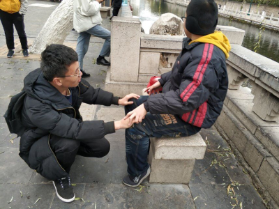 寒风瑟瑟,小寒将至,志愿者们依旧满怀热情的乘车来到小玮家,首先,志愿者们亲切地与小玮及其奶奶进行沟通交流,便开始帮奶奶收拾屋子,打扫卫生。之后志愿者们问及了小玮最近的学习情况,还有寒假里的安排,仔细的帮助小玮检查了作业,并对小玮错误的地方进行认真辅导,之后与小玮奶奶进行了深一步的交流,给小玮奶奶提供了一些小玮学习上的建议。之后,志愿者们带小玮去大明湖,感受湖光的美景,并且与小玮一起欣赏这冬日里大明湖的景色。在大明湖边,志愿者们坐下与小玮做了一些简单的小游戏,让小玮慢慢感受到了志愿者们的关爱,渐渐融入了游戏的氛围,气氛渐入佳境,笑声接连不断,志愿者们的活动也在这样的氛围中画上了句号。