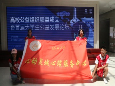 为加强各高校志愿和公益组织间的联系和交流,解决志愿服务中出现的常见问题,促进济南市大学生志愿服务事业的发展,2019年6月2日上午,由历下创益园主办、叶脉新公益协办成立的济南高校公益组织联盟暨首届大学生公益发展论坛在历下创益园举办。参加论坛的有济南市历下区民政局副局长潘东峰,叶脉新公益负责人、联盟名誉理事长禹懿珂,首届联盟理事长莫鸿芳。教育与心理科学学院心动泉城心理服务中心、心泉青年志愿者协会和院心理协会的志愿者们应邀参加。