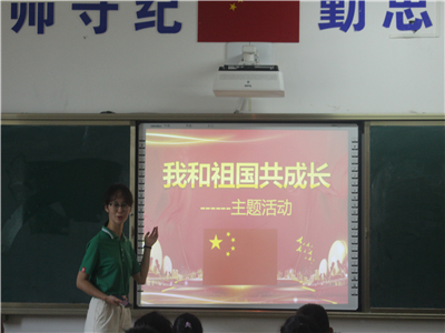 我们首先带领孩子们听歌曲《我爱我的祖国》,一词一句的教给孩子们,孩子们学习能力都很强,很快就能跟着唱起来,顿时教室里歌声嘹亮,心中满满的爱国情。在顺利的合唱之后,我们给孩子们播放了影片片段《建军大业》,让他们了解我们的祖国是如何在这个变化万千的世界屹立于世界之颠,感受当下我们国家的强大,开阔他们的眼界,激励他们不断向前,激发他们内心那份对于祖国的爱,培养他们那份爱国情怀。影片教育意义浓厚,孩子们看的也十分的投入。影片之后我们进行了交流,孩子们纷纷表达了自己的愿望与他们眼中的祖国,争先举手发言,课堂气氛活跃。并且写下了自己的想法。