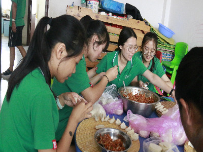 早上9点,实践团成员们来到集市,在带队的队长讲好注意事项后,按照分工开始采购食材,为制作午餐做准备。在孩子们上课的时候,实践团成员便在厨房中忙碌起来。调馅、擀面皮实践团的成员们相互帮助,为孩子们准备了一顿充满爱的水饺。看着孩子们品尝水饺时流露出真诚的笑容,实践团的成员们心里也感受到了满足感和成就感。这群孩子在生活中无法感受到父母在教育及价值观念上的正确引导和帮助,甚至在成长中缺少了父母情感上的关心和呵护,因此他们极易产生认识上的偏离和个性和心理发展的异常,一些人甚至会因此而走上犯罪道路。一顿热腾腾的午餐或许不能从根本上改变他们的生活,但是可以让他们感受到实践团带给他们的温暖,体会到社会对他们的关注。