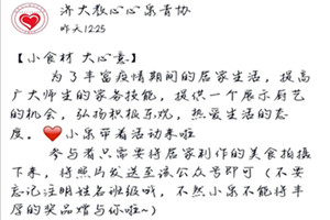 为丰富同学们疫情期间的居家生活,让同学们在宅家抗疫的同时也能学习技能、提升自我、感受生活之美,教育与心理科学学院于5月12日开展“小食材,大心意”活动,鼓励学生以短视频、图片等形式呈现最终的美食成果。