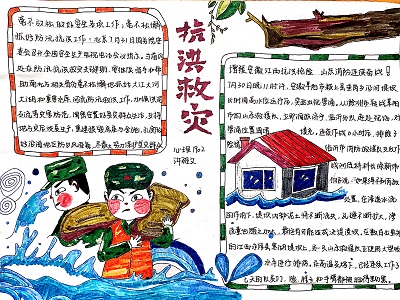 活动期间,教育与心理科学学院的各位同学踊跃投稿,纷纷用自己的方式为奋斗在抗洪一线的工作人员以及志愿者们送上祝福。至活动结束,“抗洪救灾”三下乡小队共收到数十份作品。同学们用散文、诗歌、三行诗、绘画以及手抄报的形式从不同的角度表达自己对于奋斗在抗洪一线的工作人员以及志愿者们的敬佩与祝愿。在征稿结束后,活动负责人将稿件分类整理,并上传到微信公众号等网络信息平台,借助互联网的力量将同学们的祝福传递给在抗洪一线奋战的人们。