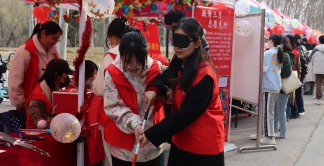 我院依托心泉青年志愿者协会,发挥学生的专业技能优势,在现场开展盲杖体验、手语基础教学、漂流瓶传情和心理投射量表测验等特色活动,帮助学校师生了解心理学知识,感受视听障碍人士的感官世界,积极倡导对特殊人士群体的呵护与关爱。