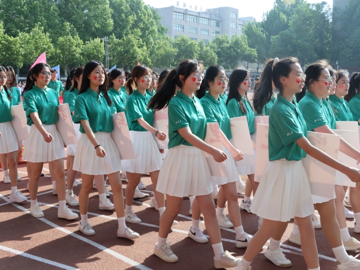 4月27日,2023年中国·太阳集团tyc9728田径运动会在主校区北院体育场隆重开幕。开幕式上,教育与心理科学学院踏着坚定自信的步伐向主席台走来,精心设计的方阵、青春灵动的着装、阳光活泼的健身操向全校展示了教心学子的魅力风采,赢得场上阵阵欢呼。